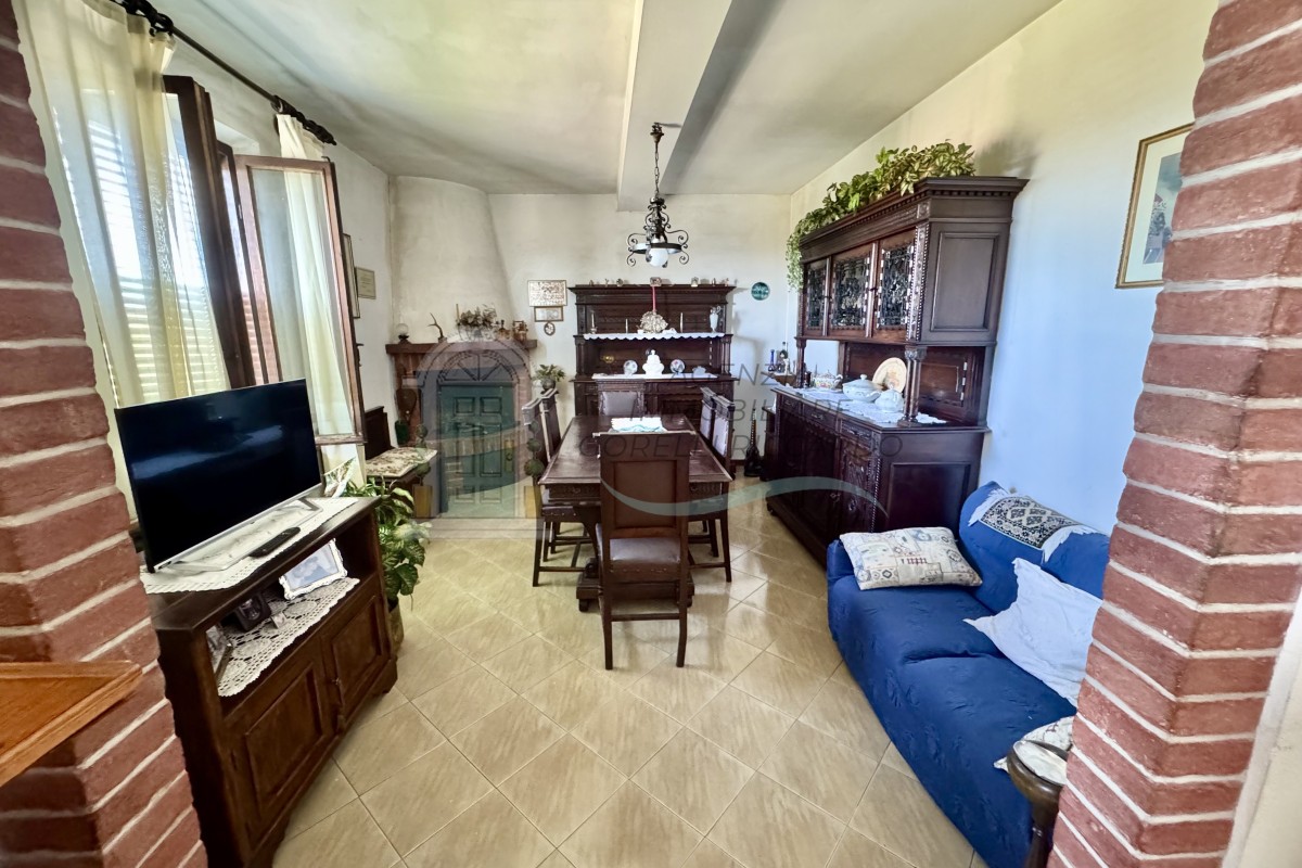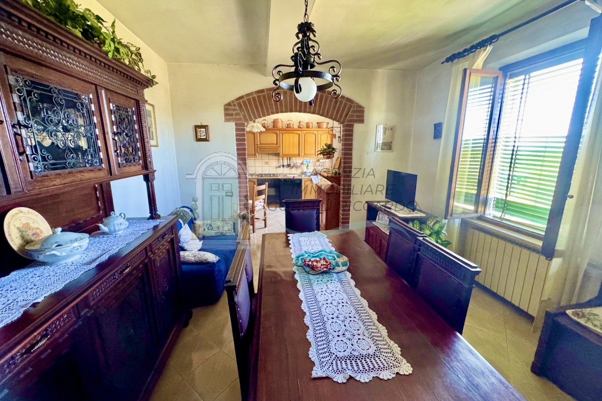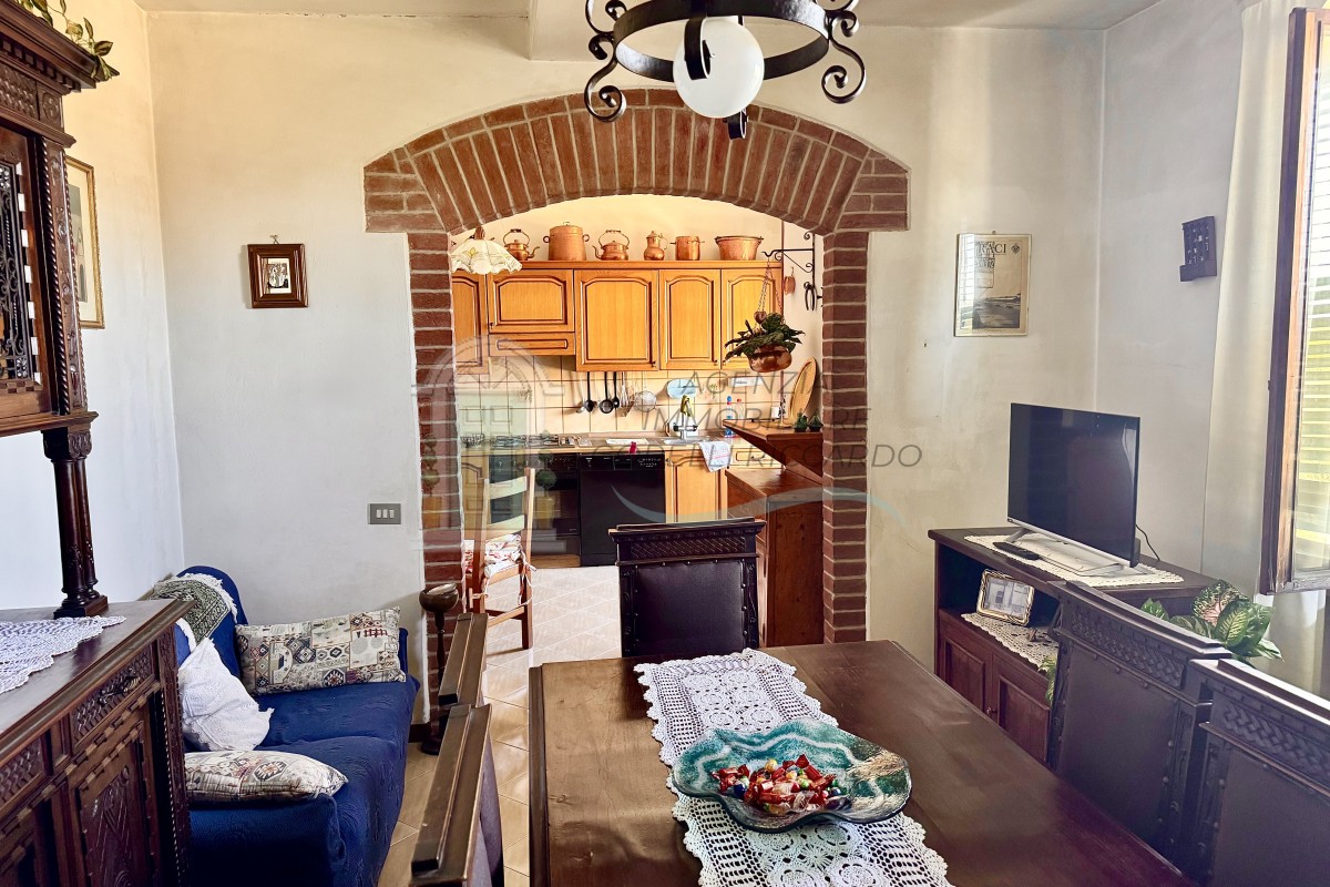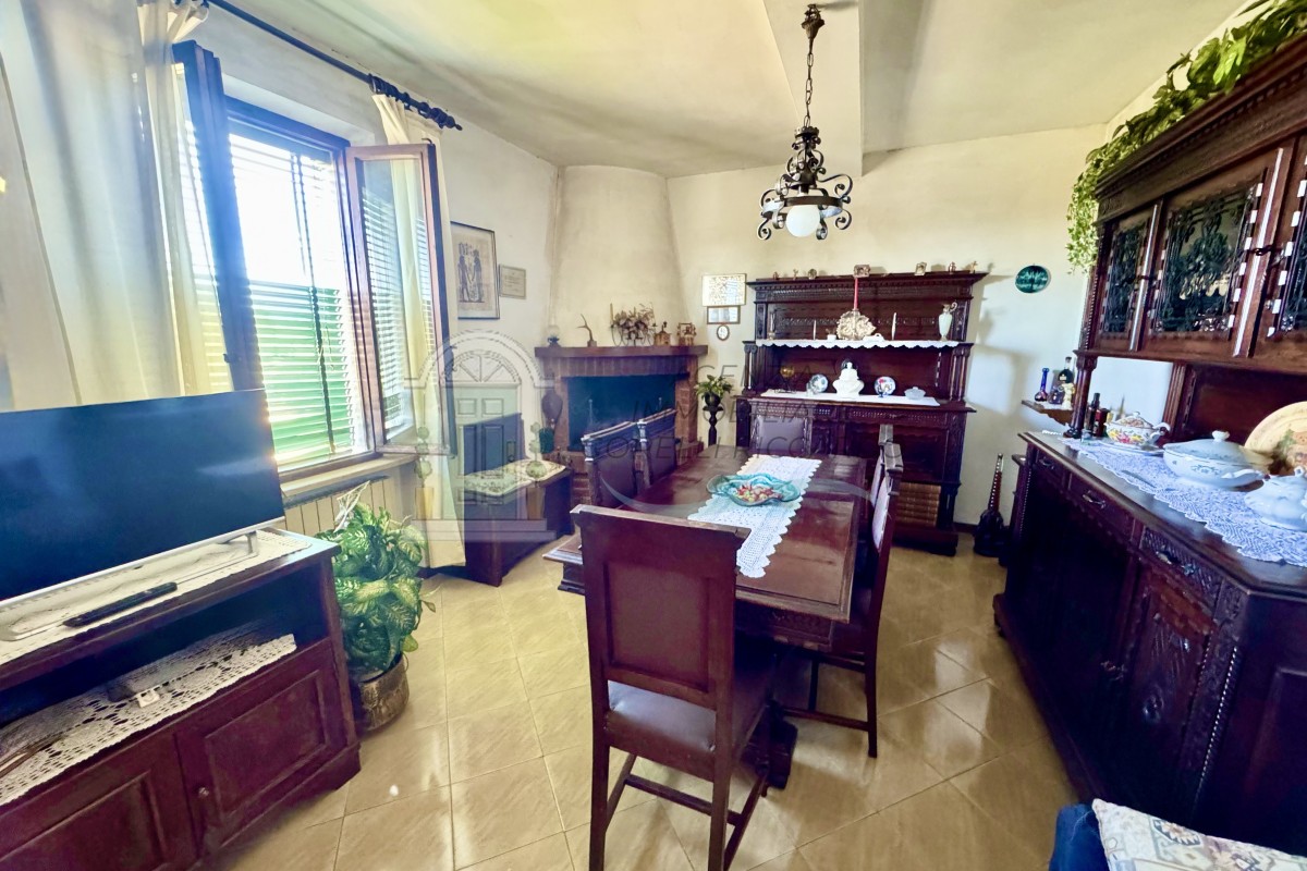 L'immobile è così distribuito: Ingresso, ampia cucina abitabile con ripostiglio, soggiorno-living con caminetto, disimpegno , camera matrimoniale, seconda camera, studio, 2 bagni di cui uno piccolino ma finestrato.