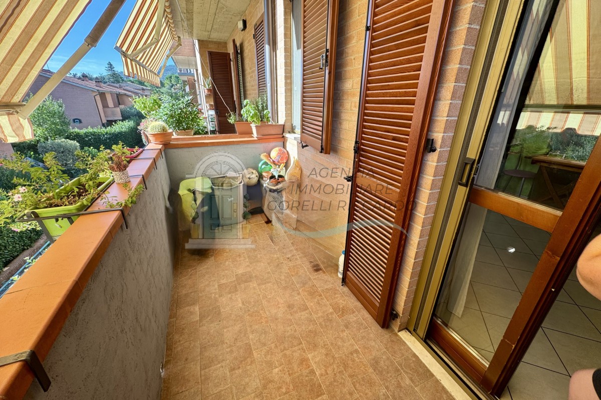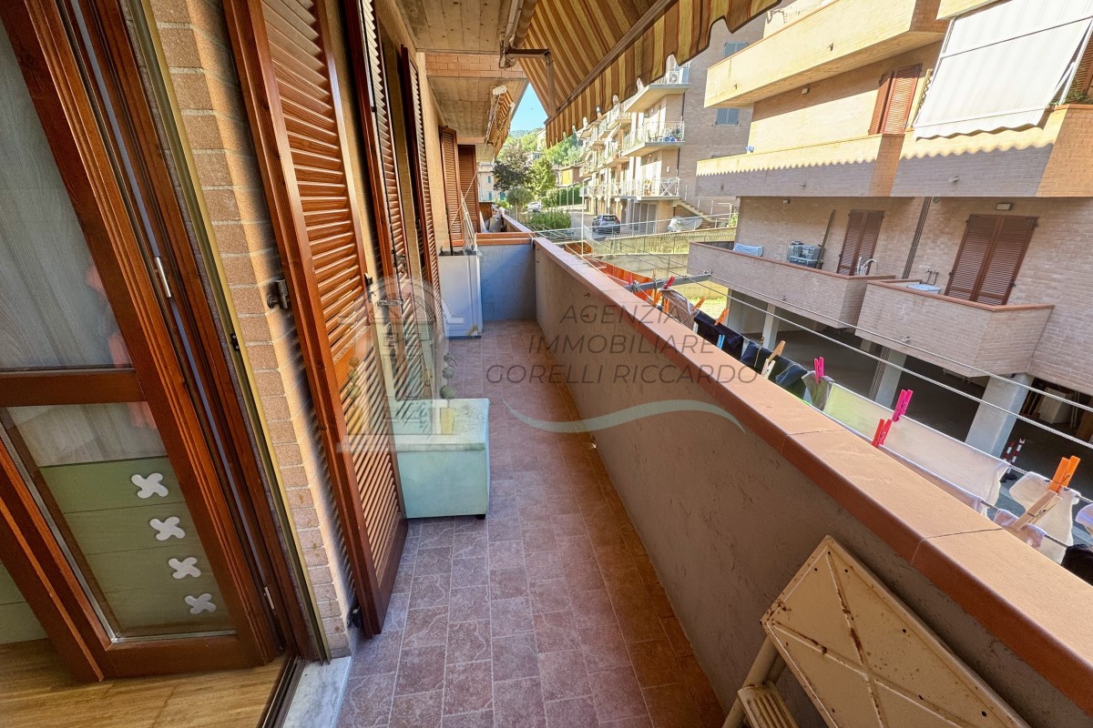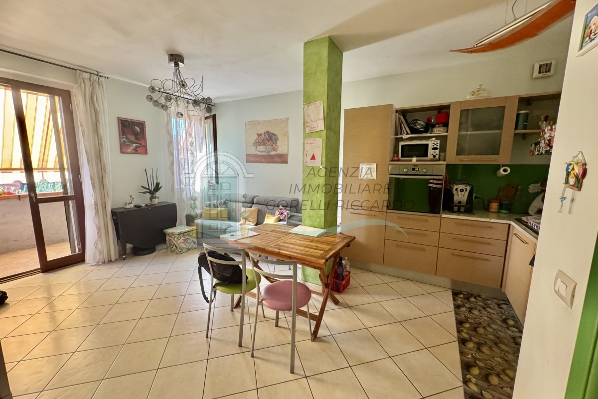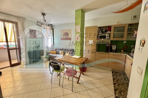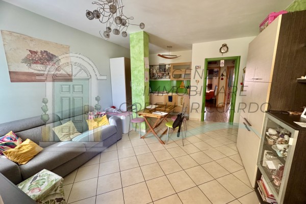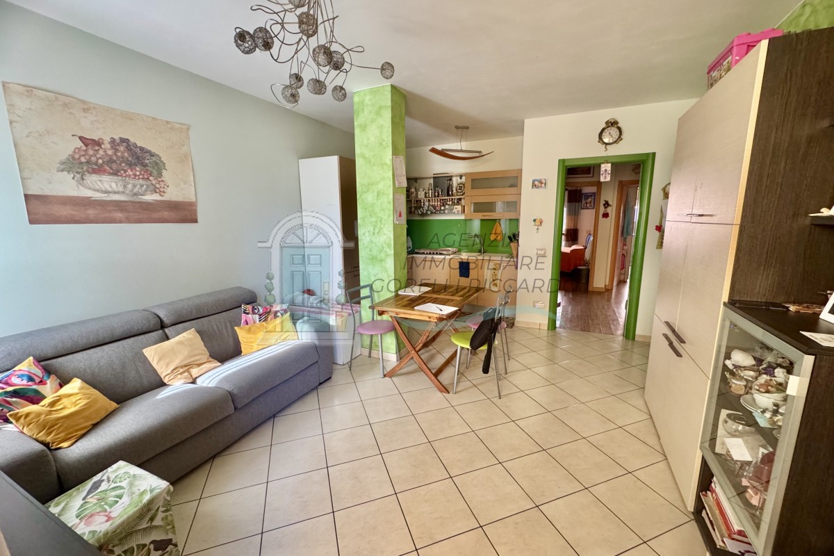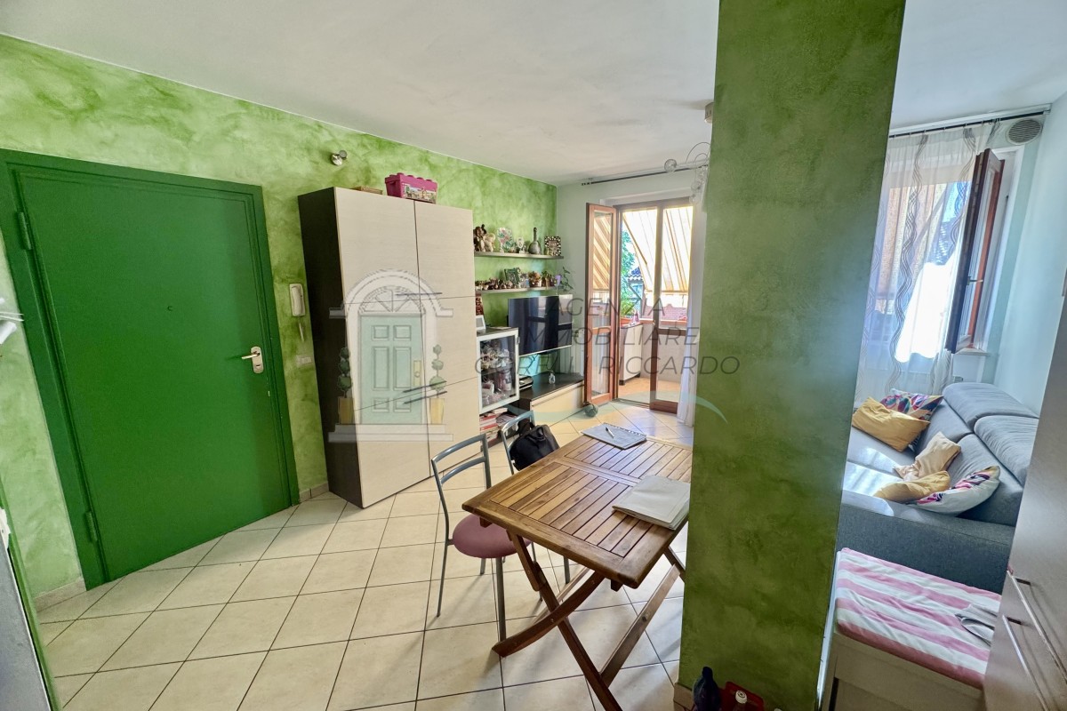 L'immobile è così distribuito: Ingresso su ampio soggiorno con agolo cottura e accesso al balcone, disimpegno con armadiatura a muro, camera matrimoniale, cameretta, terrazzo con doppi accesso (entrambe le camere), 2 bagni non finestrati di cui uno con doccia e l'altro adibito a lavanderia.